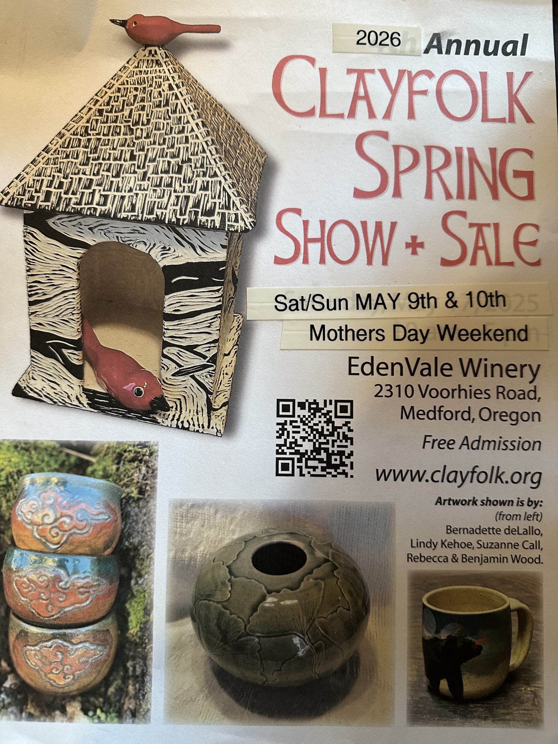 The 2026 Spring Clayfolk Show & Sale coming Mother’s Day Weekend May 9th at 10