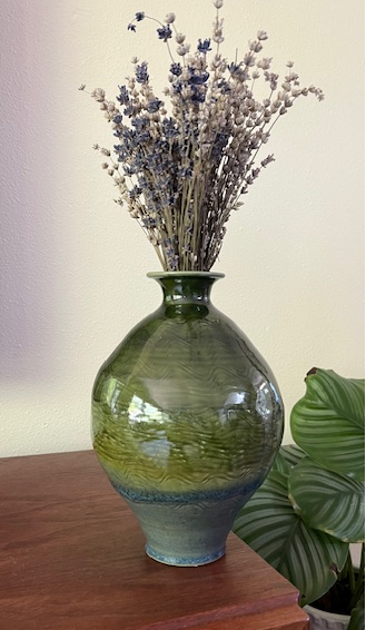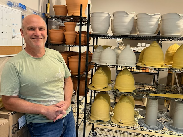 Today, after 40 years and a few career changes, John is a full-time potter. He specializes in functional ware—food and drink vessels and a variety of planters, many inspired by his production days but reimagined with a more organic style. “Engineering new forms, like hanging planters, keeps me challenged and excited. Even now, I still get a thrill every time I open the kiln.”
